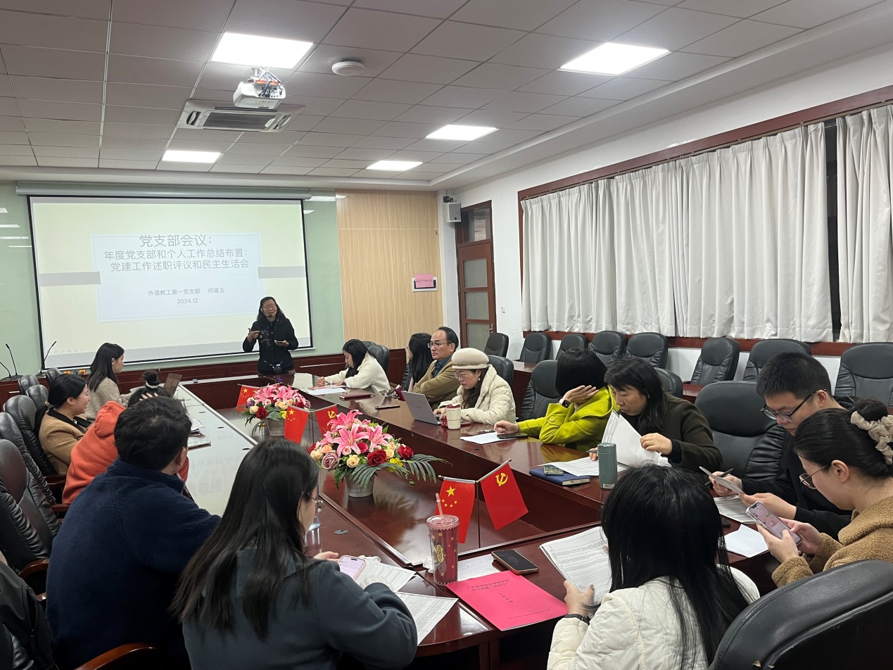 在分享之后,何瑞玉代表党支部向全体党员报告了过去一年的工作情况,并从党支部的基本概况、组织建设、思想建设、作风建设、制度建设等方面进行了全面回顾和总结。在组织建设方面,党支部不断完善组织体系,确保党的组织生活正常有序。同时,积极发展新党员,培养入党积极分子,为党的事业注入新的活力。在思想建设方面,党支部坚持把学习贯彻党的创新理论作为首要任务,定期组织党员学习党的路线方针政策和上级党组织的指示精神,引导党员坚定理想信念,增强党性修养。同时,积极开展主题党日活动、专题学习会等形式多样的学习教育活动,丰富党员的思想文化生活。在作风建设方面,党支部始终把作风建设作为党的建设的重要内容来抓,严格落实中央八项规定精神。同时,积极开展廉政教育、警示教育活动,引导党员树立正确的权力观、地位观、利益观。在制度建设方面,党支部不断完善各项制度,建立健全工作机制,确保各项工作有章可循、有据可查。同时,注重加强制度执行情况的监督检查,确保各项制度落到实处、取得实效。何瑞玉在报告中重点汇报了党支部开展党纪学习教育和学习贯彻党的二十届三中全会精神的情况。她指出,党支部积极响应党中央号召,认真组织开展了党纪学习教育,并通过集中学习、专题研讨、参观红色教育基地等多种形式引导党员深入学习贯彻党的二十届三中全会精神。在服务群众方面,党支部很好地完成了“春华秋实讲坛”项目和党员志愿者“微助服务”项目,获得广大的师生一致好评。