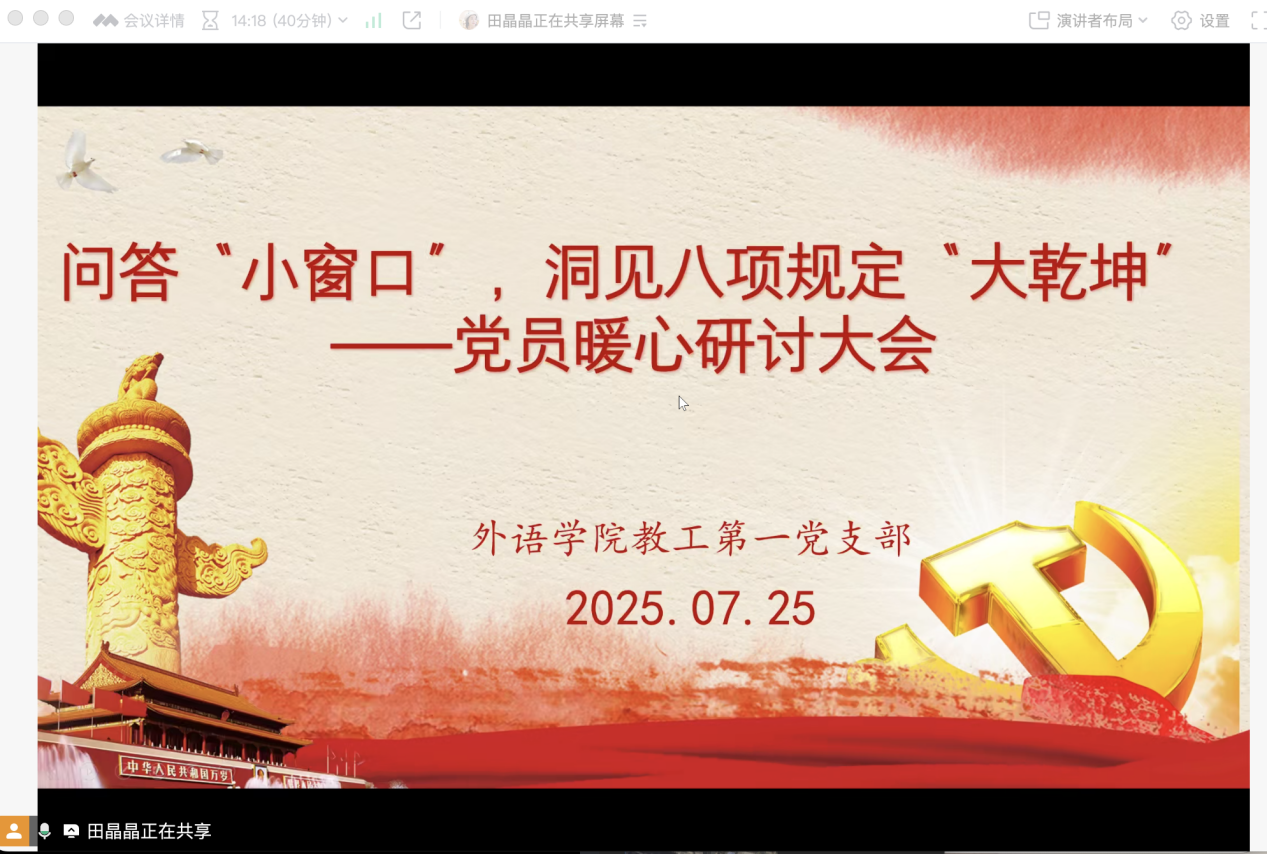 awc77万象城官网教工第一党支部开展暑期线上党日活动——“深入贯彻中央八项规定精神学习教育”学习交流会