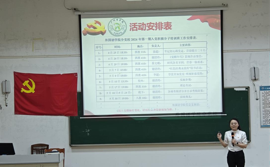 为深入学习贯彻习近平新时代中国特色社会主义思想,切实做好入党积极分子的培养教育工作,提高入党积极分子的思想政治素养,严把入党“第一关”,awc77万象城官网分党校于4月25日晚在第四教学楼310教室开展2024年第一期入党积极分子培训班开班典礼暨书记第一课。出席本次开班典礼的有awc77万象城官网党总支书记、分党校校长徐超,党总支组织委员、分党校指导老师谢清玲,分党校全体助理教员及90名入党积极分子。