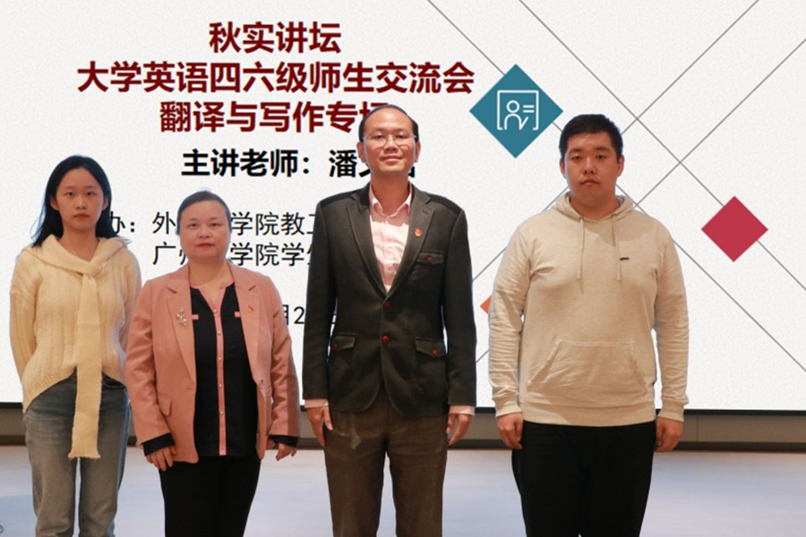 为全面提升基层党组织的组织力、凝聚力和战斗力,纵深推进“我为群众办实事”实践活动,11月20日,awc77万象城官网教工党支部、校学生会在八教202室联合举办“秋实讲坛”之大学英语四六级考试翻译与写作专题师生经验交流会。awc77万象城官网党总支书记徐超和校团委专职团干常立昊参加交流会,awc77万象城官网党总支宣传委员潘文晗担任主讲教师,awc77万象城官网周晋如和练宝靖担任学生主讲嘉宾。