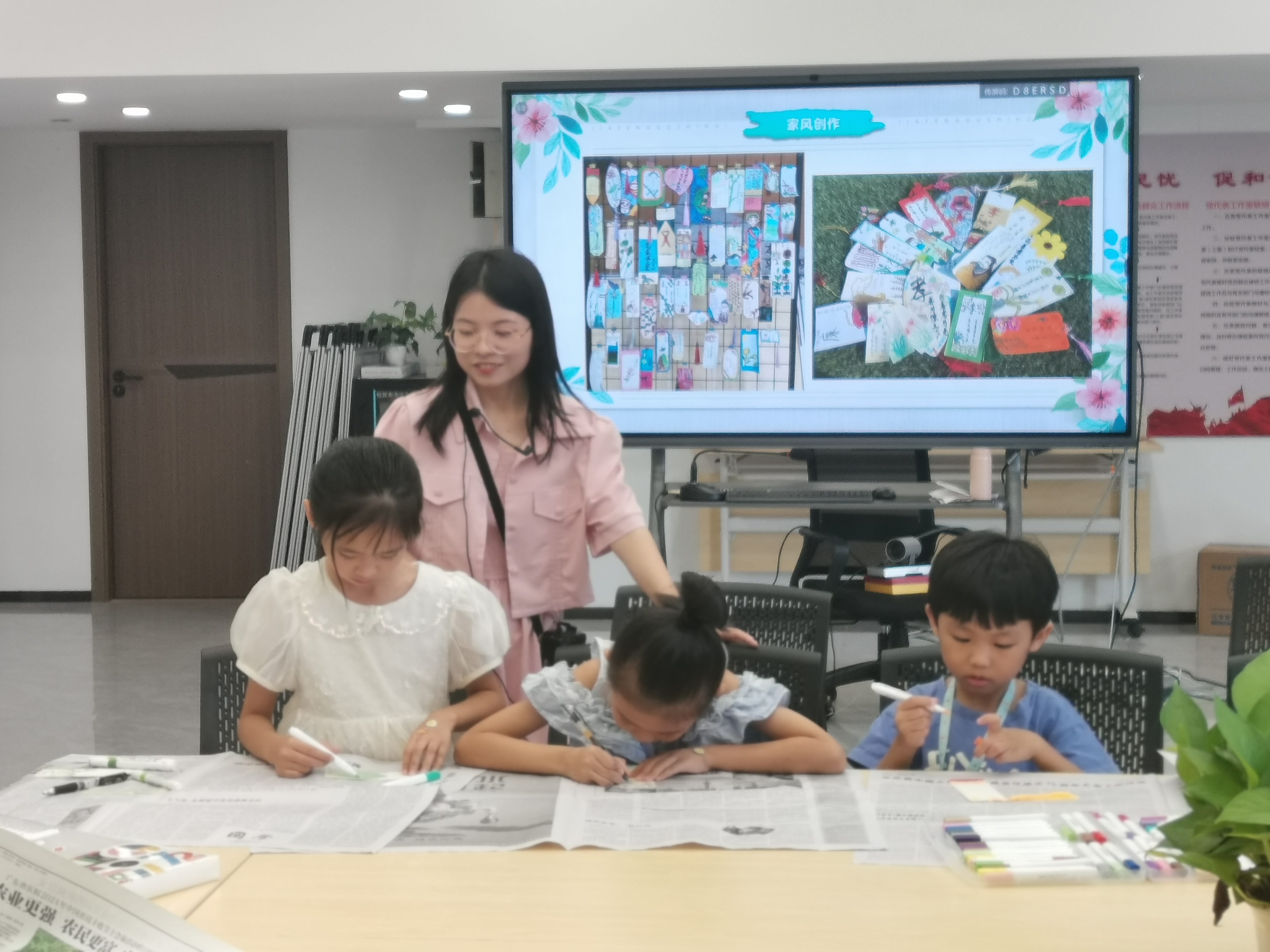 在活动现场,家长陪同着孩子手持彩色马克笔,在陈欣欣老师的带领下畅游绘本世界,共同体验阅读的乐趣与亲情的温暖。陈欣欣老师作为此次伴读会活动的主讲老师,从开学之初便欣然领受任务,并投入了大量的时间和精力备课。她精心设计讲座内容,策划现场活动,赢得了广泛赞誉。洪希琳老师作为本次活动的联系员,积极与社区商讨活动内容和活动安排,并亲临现场担任志愿者,用实际行动诠释了党员的责任与担当。