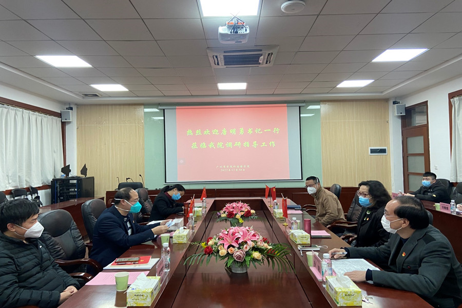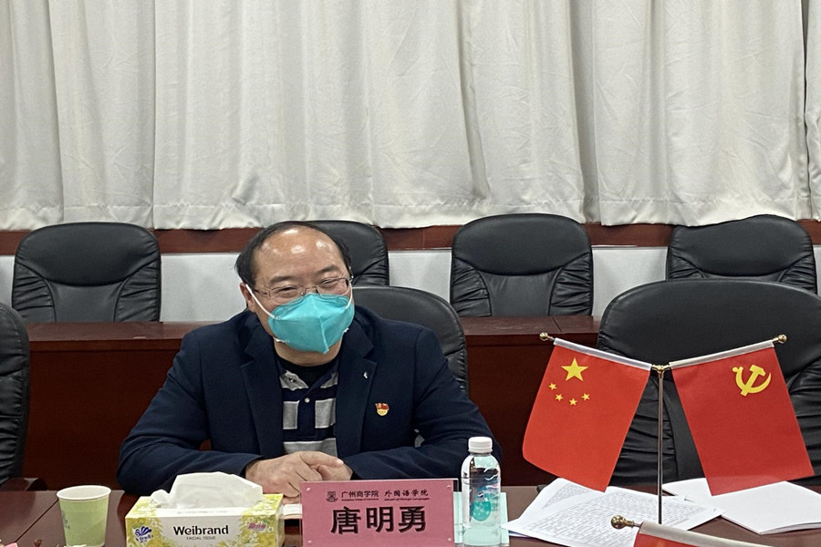马蔚兰对唐明勇一行的到来表示热烈欢迎,并从课程设置、专业方向、师资队伍、特色亮点等方面介绍了学院基本情况。她指出,万象城立足广州、面向广东、辐射全国,着力打造“外语优势,行业特色”的培养特色,在课程思政、学科竞赛、考研升学等卓有成效。徐超从党总支的结构设置、队伍配备、双融双促等方面详细介绍了万象城的党建工作情况,并重点介绍了学院教师党员导师制、春华秋实讲坛和22365社会实践体系党建特色品牌。