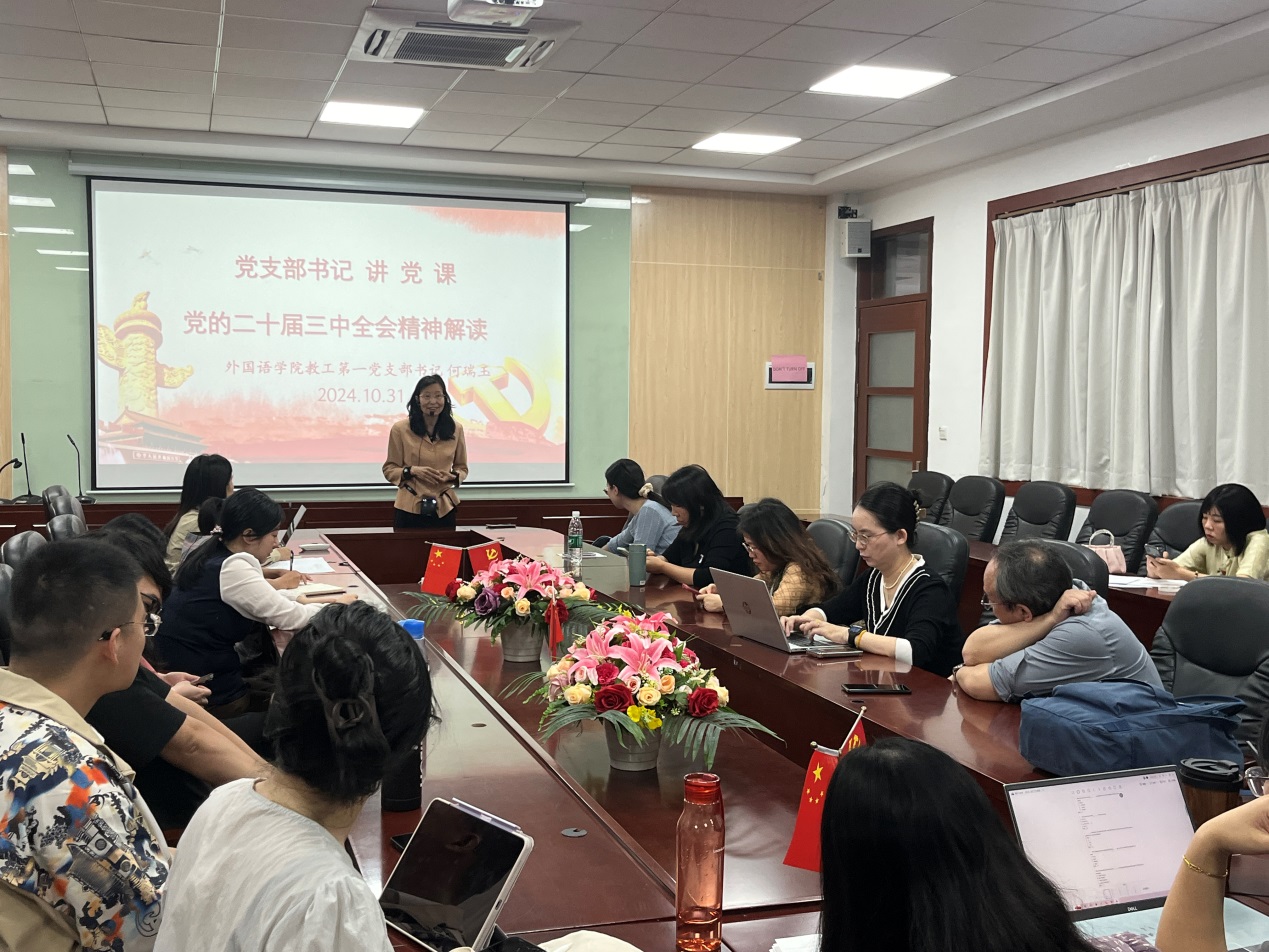 为深入学习宣传贯彻党的二十届三中全会精神,深刻领会和把握全面深化改革的重大成就、重大意义以及指导思想,10月31日,awc77万象城官网教工第一党支部举行了以“党的二十届三中全会精神解读”为主题的书记讲党课活动。本次党课由党支部书记何瑞玉老师主讲。