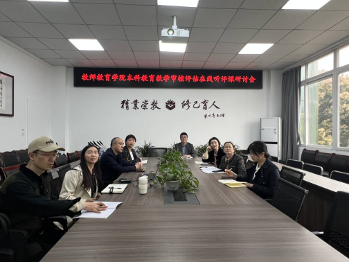 为扎实推进本科教育教学审核评估工作,深化课堂教学改革,提升师范生科研能力培养质量,taptap点点官方网站于2025年3月27日15:25在博文楼206A会议室组织开展本科教育教学审核评估在线听评课研讨会。本次研讨会以《教育科学研究方法》课程中“开题报告撰写”教学单元为研讨案例,通过线上直播授课、专家实时评课的形式展开,学院院长黄培森、党委副书记王文娟、副院长赵栅凌、各专业教研室主任参加本次研讨会议。