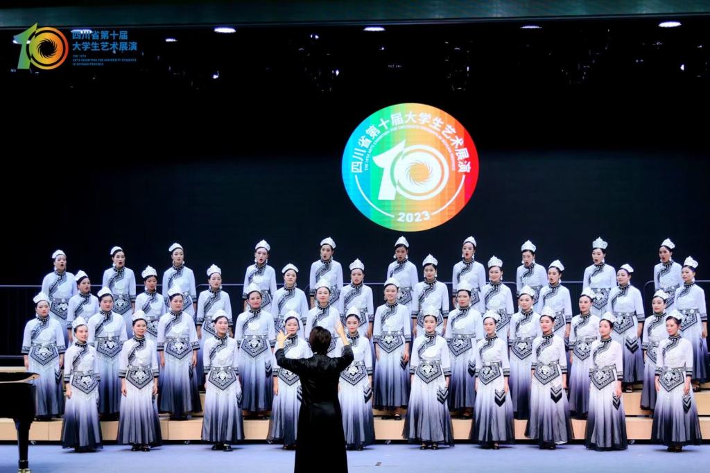 两首作品均采用四声部无伴奏形式,演唱难度较大。同学们现场展演中在王文娟老师的激情带动下,完美地呈现了作品的风格特征和艺术美感,获得评委们的一致好评,荣获四川省第十届大学生艺术节一等奖。