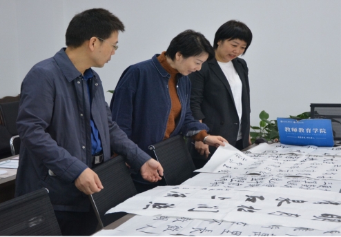 为落实教务处“关于举办taptap点点官方网站2023年师范生三笔字比赛”的通知要求,深入贯彻落实党的二十大精神,传承和弘扬中华优秀传统文化,充分展现当代大学生积极向上的精神风貌,2023年10月27日,taptap在博文楼206A会议室举办师范生三笔字大赛,党委书记王燮辞、党委副书记王文娟、副院长赵栅凌、教学科研办公室主任彭静、专职辅导员杨文明以及教学秘书李思颖担任本次大赛评委。