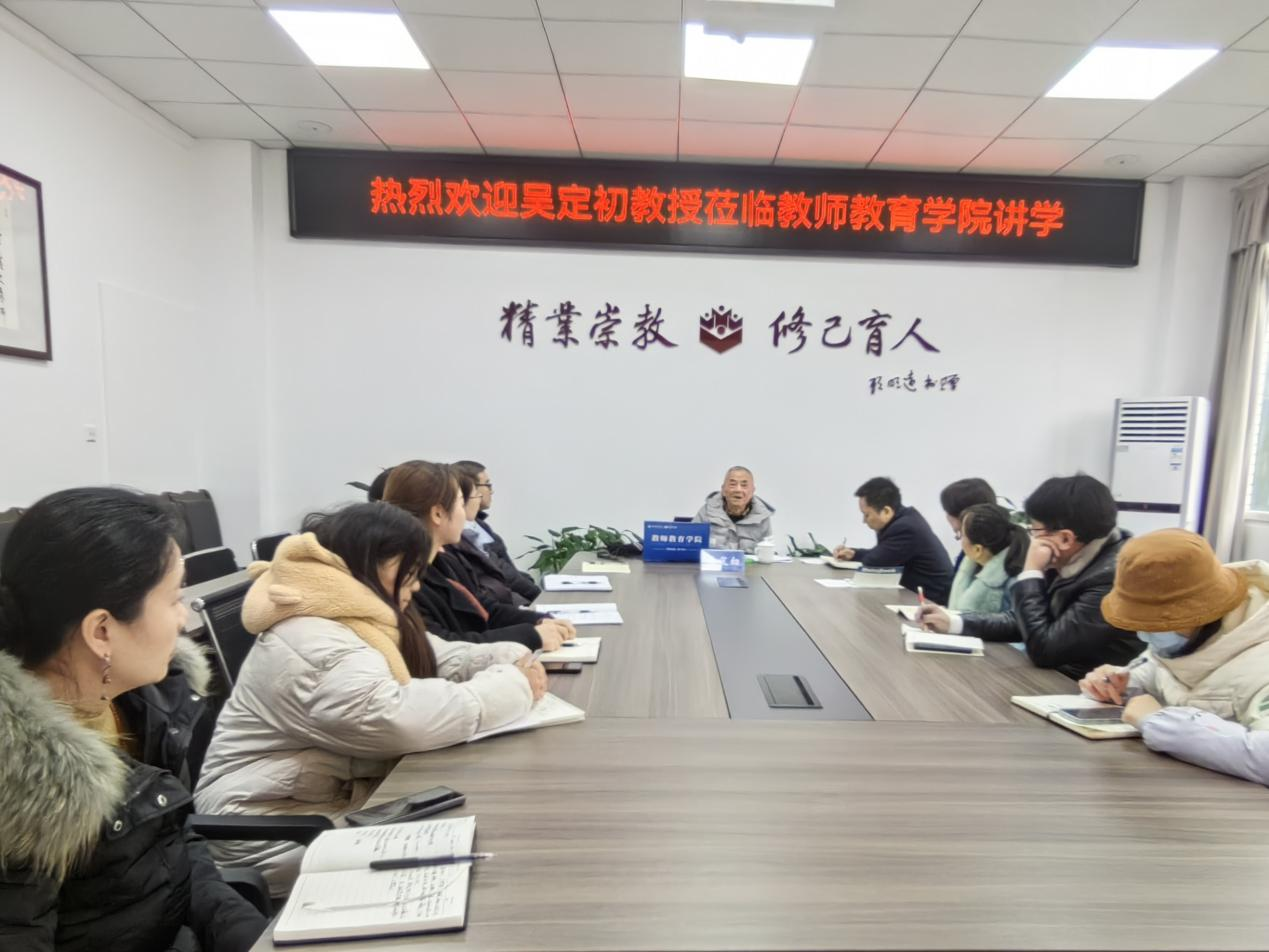 为进一步推进学院学科建设创新发展,12月18日下午,四川师范大学教育科学学院博士生导师吴定初教授出席了taptap学科建设座谈交流会。座谈交流会在博文楼206会议室举行,会议由党委副书记王文娟主持,学院学科带头人、教研室主任及部分师生参加了指导会。