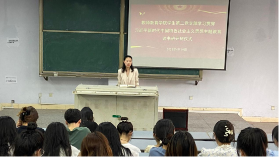 2023年4月17日,taptap点点官方网站学生第二党支部在博文楼112教室举行了学习贯彻习近平新时代中国特色社会主义思想主题教育读书班开班仪式。学生第二党支部书记文娟,支部委员赵会辉、杨文明以及在校学生党员参加了此次开班仪式,本次开班仪式由文娟书记主持。
