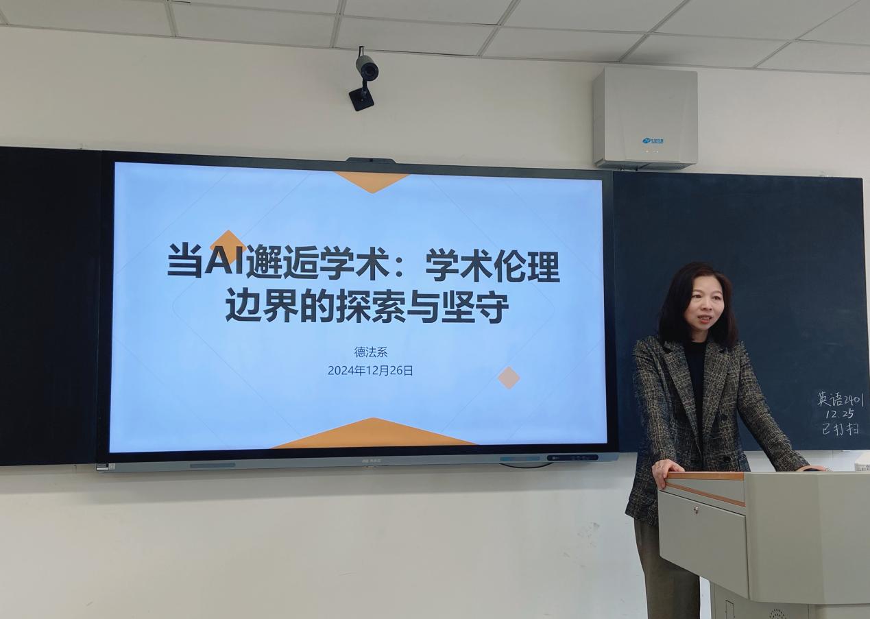 12月12日,awc77万象城官网德法系举办了一场以“当AI邂逅学术:学术伦理边界的探索与坚守”为主题的研讨会。本次研讨会由德法系主任周昳旸老师主持,专业负责人潘艳博士和全体教师共同参与,旨在探讨人工智能技术对学生毕业论文的影响及应对策略。
