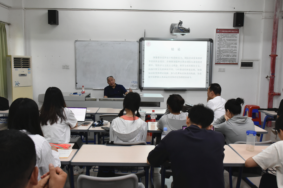 讲座在“国家意识”、“民族意识”和“文化意识”三个概念的区别与联系的探讨中拉开帷幕。通过梳理外语教育国家意识话语建构的学术发展历程,杨枫诠释了外语教育教学中建构“国家意识”的合理性和必要性,展现了外语教育教学中建立“国家意识”和发展“课程思政”之间的紧密联系。