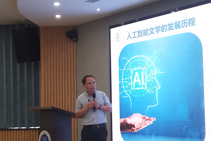 5月16日下午,万象城在第八教学楼102报告厅成功举办题目为“人工智能文学的未来:机遇与挑战”的学术讲座。本次学术报告特邀广东外语外贸大学刘茂生教授进行精彩讲解,由学院教师王聪博士主持,近50名教师参加了本次学术讲座。
