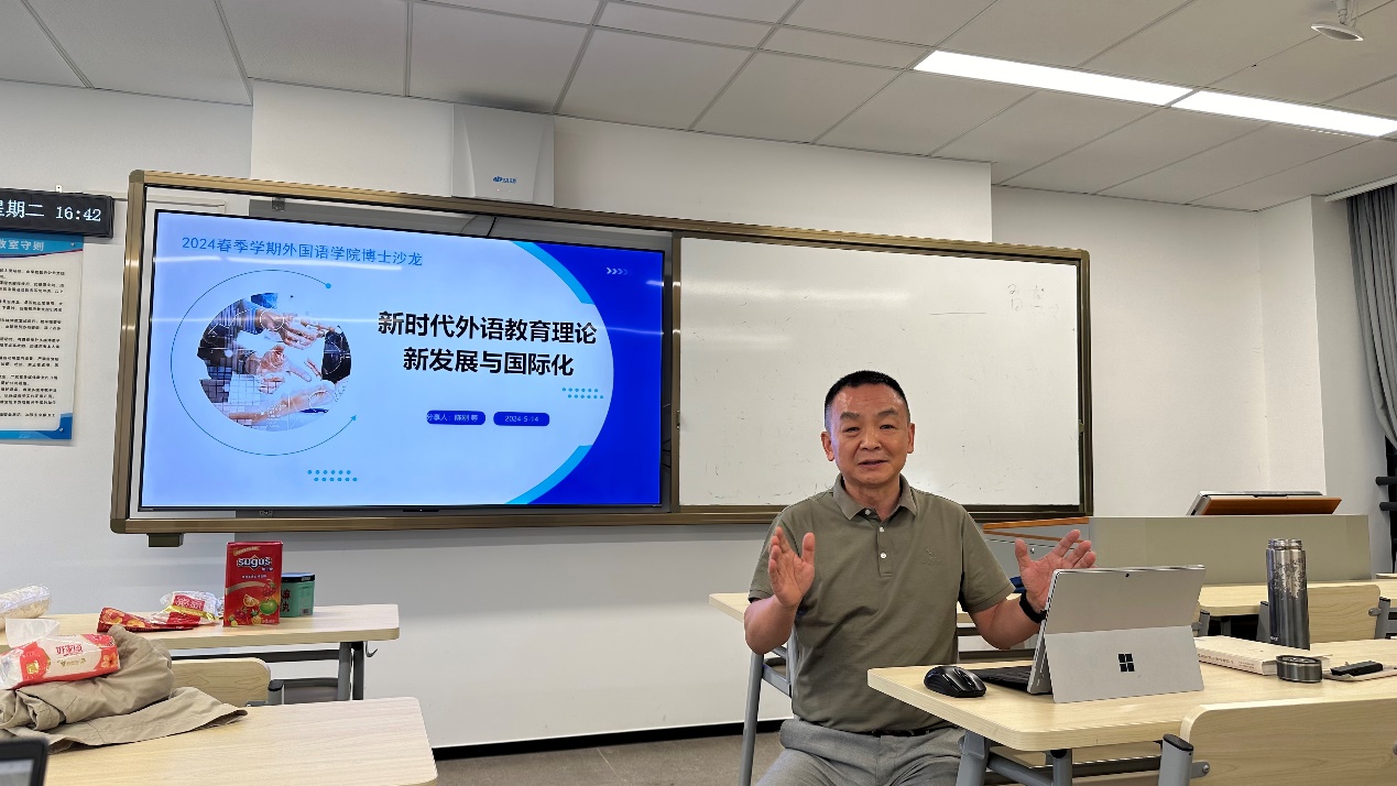 5月14日下午,万象城举办题为“新时代外语教育理论新发展与国际化”的博士沙龙。此次沙龙由陈刚博士主持,采用了线上线下相结合的方式,近三十位老师参加了本次沙龙研讨。