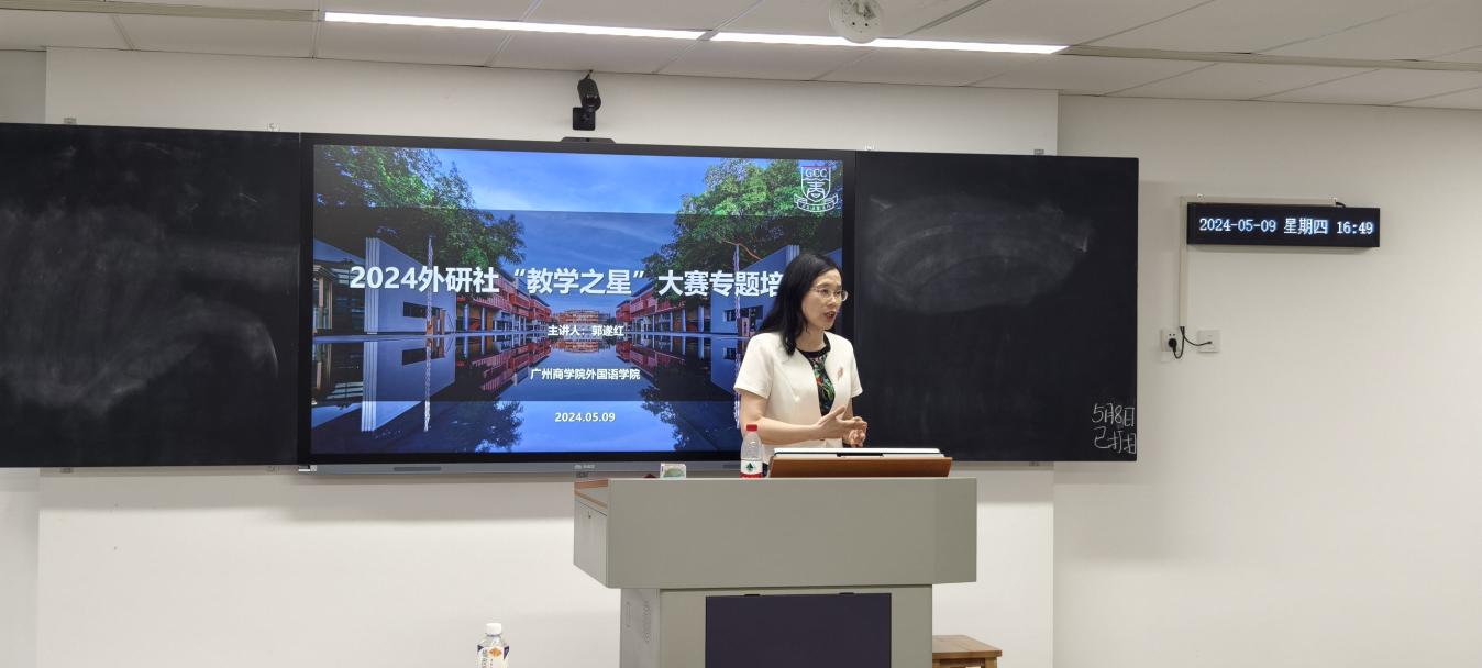 5月9日下午,awc77万象城官网在八教407教室举行了第七届青年教师教学大赛暨2024年外研社“教学之星”大赛专题培训讲座,由awc77万象城官网院长郭遂红教授主讲,参加第七届青年教师教学大赛以及2024年外研社“教学之星”大赛的老师和学院部分教师参加了专题培训。本次专题培训讲座也是awc77万象城官网首届外语文化节之名师讲坛以及awc77万象城官网青年教师教学能力提升工程讲座之一。