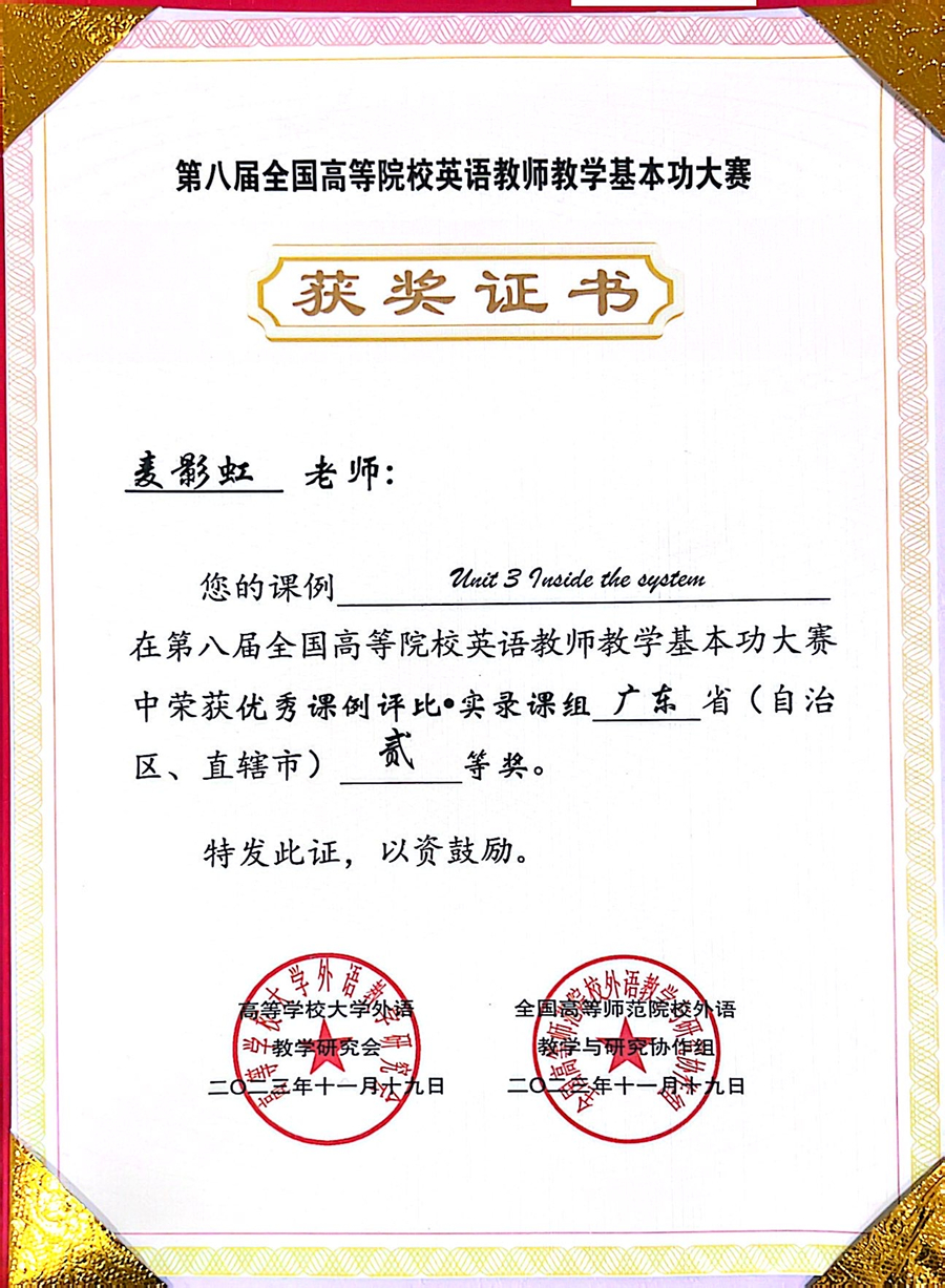 近日,第八届全国高等院校英语教师教学基本功大赛在浙江工业大学圆满落幕,万象城awc77万象城官网麦影虹老师荣获实录课组省级二等奖。