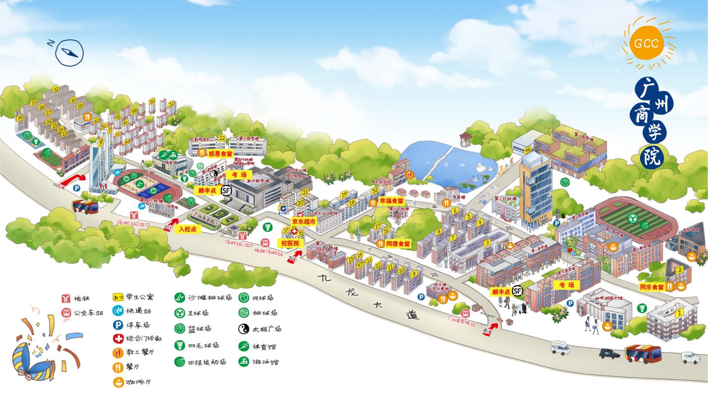 ②自驾车者可从不同的线路进入广汕公路(G324)→九龙大道→广商北门(西南2门)。
