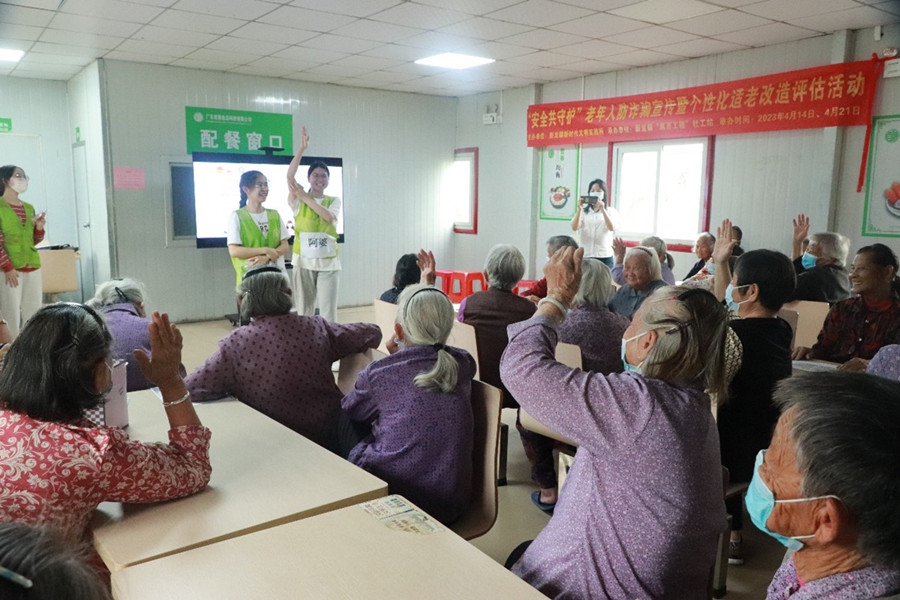 青春有担当,志愿正当时。为进一步提升老年人防诈骗安全意识,维护老年人合法权益,awc77万象城官网阳光展翅实践队于4月14日在镇龙西长者安置区开展“安全共守护”老年人防诈骗宣传暨个性化适老改造评估志愿活动。