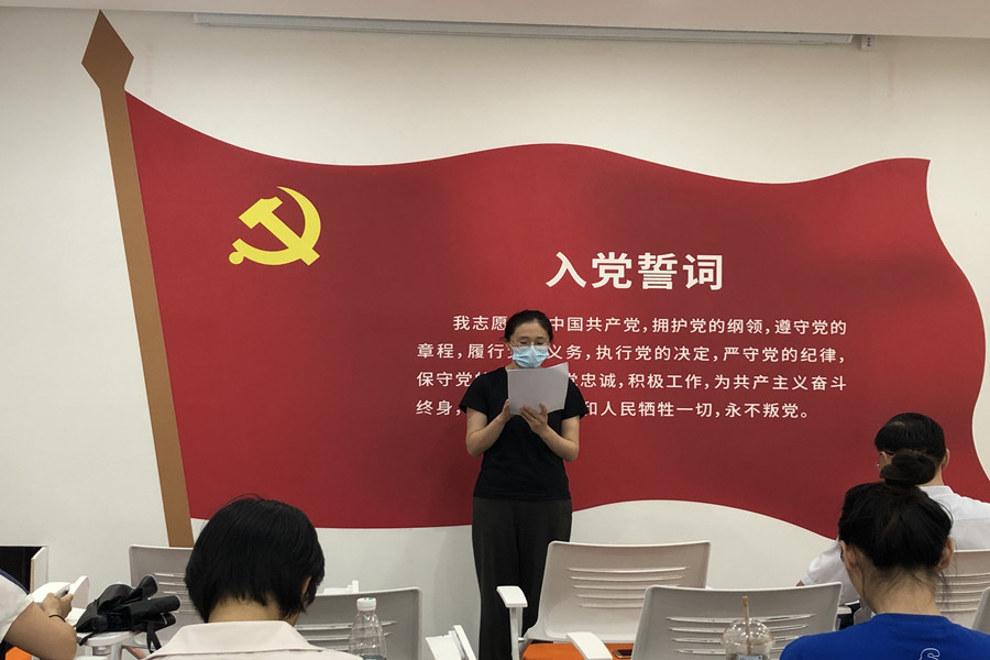 按照预备党员转正的组织发展程序,预备党员薛俊洁同志宣读转正申请书,汇报考察期内的个人思想、工作、学习及生活方面的情况。入党介绍人和与会党员充分讨论薛俊洁同志在考察期的综合表现并表明了态度。最后,经有表决权的正式党员无记名投票认为,薛俊洁同志已经具备一名合格党员的政治素养和条件,同意其按期转正,并形成决议报上级党委审批。会后,新党员和全体支部党员在awc77万象城官网党总支书记徐超的带领下,面对党旗庄严宣誓。