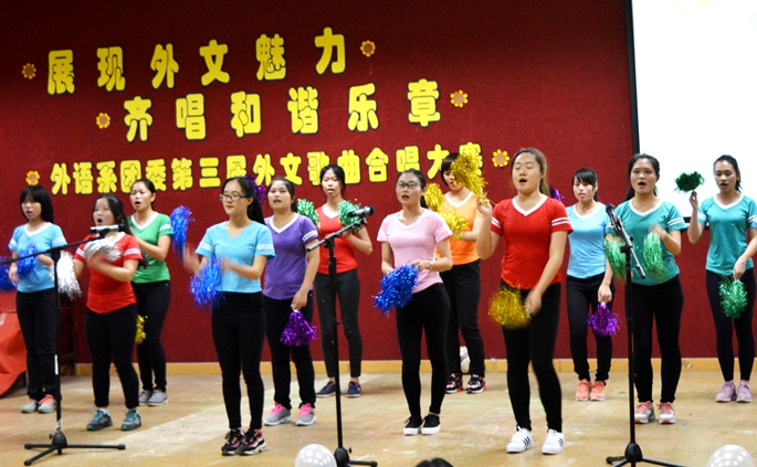 12月19日晚7:30,由我系团委承办的以“展现外文魅力,齐唱和谐乐章”为主题的我系团委第三届外文歌曲合唱大赛决赛在A206拉开帷幕。比赛邀请到外语系党总支书记徐超,系团委书记刘万里、系学生会指导老师黄玉亭、15级辅导员林蔚以及各兄弟院系代表。