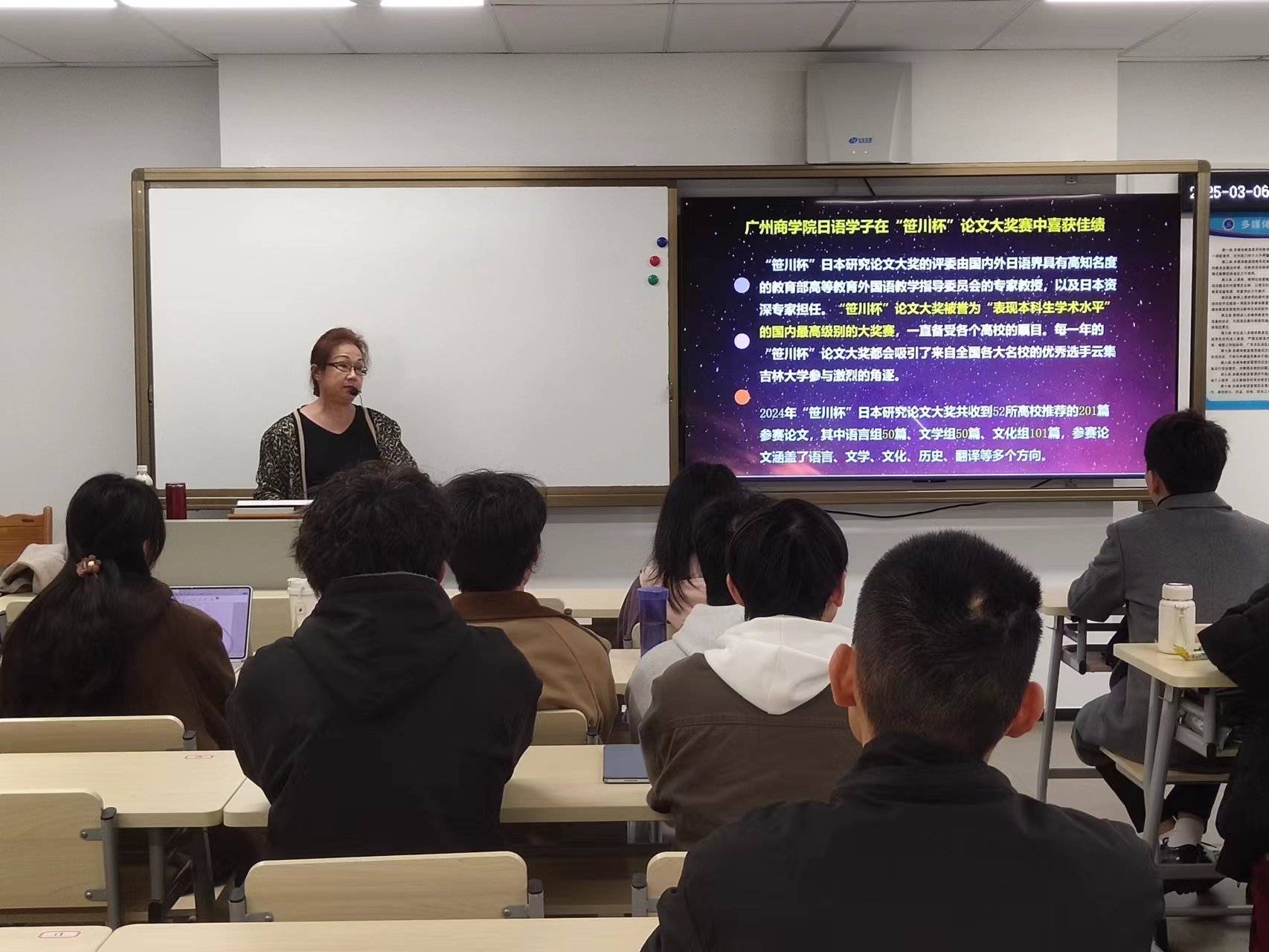 根据学院创新培优方针和日语系的发展实施部署,3月6日,日语系专业负责人刘小珊教授主持召开了日语论文大赛集训营的学员选拔会,共有20名候选学员及部分指导老师参加。本次会议旨在针对即将于2025年举办的国内“笹川杯”及国际“宫本论文大赏”,日语系召集论文大赛候选选手,并与指导老师团队共同商讨指导方针及具体的训练模式等相关事宜。“笹川杯”大赛是全国范围的高规格、高水准的重要赛事,是国内日语专业规格最高、最具影响力的的本科生论文大赛。“宫本论文大赏”,由日本日中关系协会主办,旨在促进中日两国高校学生在学术研究上的交流与合作,也是一个非常高规格的学术对话平台。