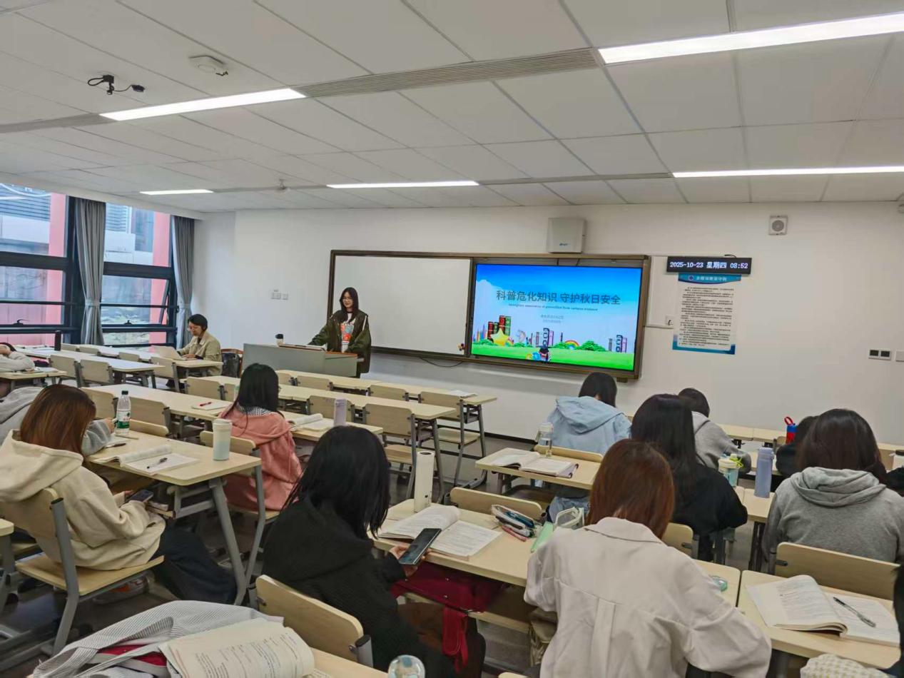 视频观看结束后,班会特别加入“生活危化品自查”模块。各班委结合秋季气候特点,针对学生常用的护手霜、驱蚊贴等含化学成分的用品,详解成分安全识别与储存要点。