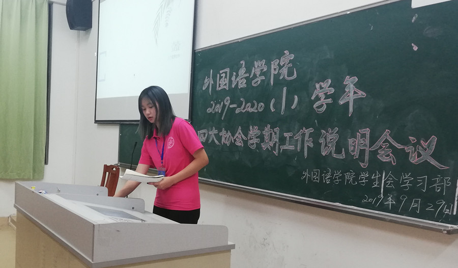 最后,学生会主席黄雨珊作总结发言,她感谢各协会对学生会工作的理解和支持,建议各协会与学生会要加强沟通、团结协作、相互理解,借助社团力量,为广大同学们创造良好的外语学习条件,从而实现共赢的结果。