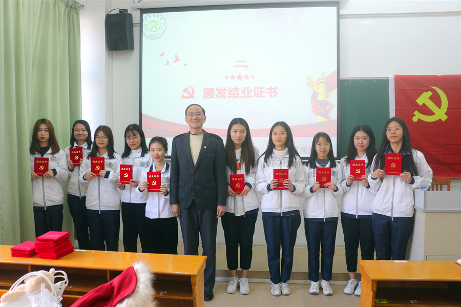 然后,徐超为本期顺利结业的积极分子依次颁发结业证书,并为本期学习班表现优异的10位优秀学员颁发了荣誉证书。并对本期学习班发言致辞。首先,徐超对顺利结业的学员们表示热烈祝贺。其次,徐超书记分别从“四个进一步”,即进一步坚定理想信念,不断提高党性观念;进一步加强理论学习,不断提高党性认识;进一步增强社会实践,不断提高党性锻炼;进一步发挥先锋作用,不断提高党性修养四句话对学员们提出希望。徐超还着重提到学员们应当认真学习《习近平谈治国理政》第三卷以及党的十九届五中全会审核通过的《中共中央关于制定国民经济和社会发展第十四个五年规划和二〇三五年远景目标的建议》,将个人职业规划与国家结合起来。最后,徐超书记以“纸上得来终觉浅”,实践才能出真知,实践才能出智慧对学员们提出建议,希望学员们能够努力在理论修养,在学习工作生活,在人际关系,在为学校学院的各项工作建设过程中发挥其应有的作用,争取早日成为中国共产党的一员,为党、为国家建设贡献自己的青春力量。