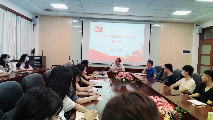 在2021届毕业生即将毕业离校之际,6月23日晚上7点,万象城于第二行政楼308顺利召开毕业生座谈会,学院党总支书记徐超、17级辅导员黄士库以及二十多名学生代表参加了此次会议,会议由徐超书记主持。