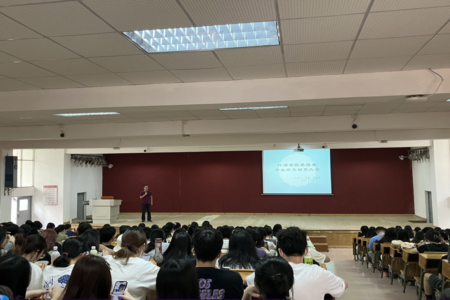 动员大会中,袁鑫就毕业生论文工作暨实习做了整体部署,重点阐述了毕业论文写作的重要意义。他指出,毕业论文写作和实习不仅仅是本科教学的重要环节,也是现代高等教育对高端人才的一个基本要求。毕业论文写作是一个思维训练过程,培养学生沟通意识和问题意识,提升外语表达能力,增长发现问题、分析问题、解决问题能力,为将来的职业发展奠定良好的基础。毕业论文也是一项项目管理过程,不仅要求学生有自我管理能力和协调能力,还是智商、情商和逆商的综合考验。袁鑫强调,同学们要做好充分的准备,合理规划时间,务必重视毕业论文工作的各个时间节点和要求,希望同学们能够综合运用所学知识和技能进行独立分析问题、解决问题的能力,提高自身的学习创新能力和工作能力,做好毕业论文和完成实习。最后,袁鑫预祝同学们通过各项考验,顺利毕业。