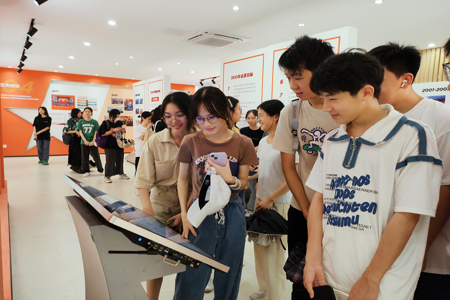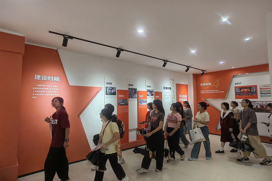 从小小红船,到领航复兴大业的巍巍巨轮,中国共产党在艰苦奋斗的历程中,书写了波澜壮阔的历史画卷,留下了宝贵的实践经验和精神财富。2023级新生在“青思苑”自由参观学习,他们透过墙上的字字句句,学习过去十年党和国家事业取得的辉煌历史成就。