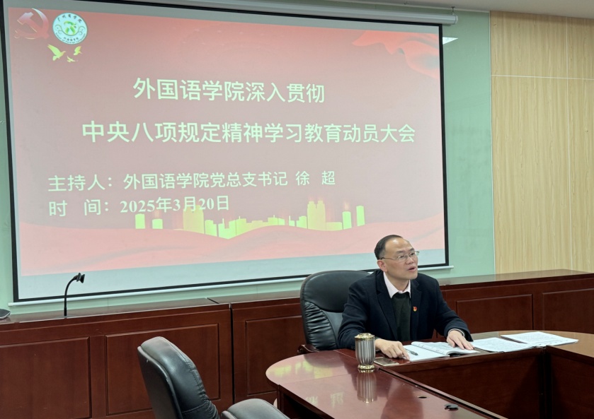 徐超对学院开展深入贯彻中央八项规定精神学习教育作动员部署。他指出,全体师生要深刻认识开展学习教育的重要性,全体党员要切实增强政治意识、大局意识、核心意识、看齐意识,把思想和行动统一到党中央的决策部署上来;同时也要紧密结合学院实际,将学习教育融入日常工作中,确保取得实效。同时,要加强监督检查,对违反中央八项规定精神的行为,发现一起、查处一起。他强调,学院要把握好学习教育目标,一是要坚持学习教育与学院党建思想政治教育工作相融合,推动学习教育融入日常,抓在经常。二是要坚持学习教育与学院日常管理相结合,确保学习教育成果转化为实际工作效能,切实把学习教育成果转化为推动学院各项事业发展的强大动力。三是要坚持学习教育与解决实际问题相联系,制定切实可行的整改措施,确保问题得到有效解决。