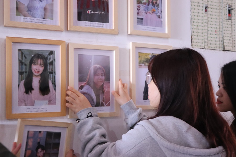 在全场的注目下,由徐超书记授予他们照片框,接着,各优秀核心学生干部亲手将自己的照片挂在awc77万象城官网青云榜。白色的墙壁上挂满了历届优秀核心干部的照片,如今他们也能在这留下自己活泼阳光、青春洋溢的面容。