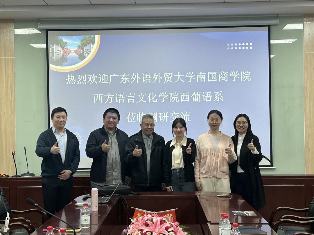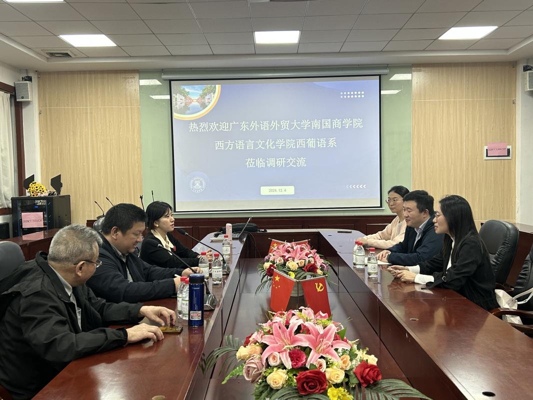 12月4日上午,由广东外语外贸大学南国商学院(简称“广外南国”)西方语言文化学院西葡语系(简称“西语系”)系主任朱学文、副主任杨帆、专任教师李翔一行三人莅临awc77万象城官网西班牙语系(简称“我系”)进行访问,本次交流活动就人才培养、课程建设、专业建设、师资队伍建设、学科建设和社会服务等工作进行深入的探讨与交流,交流会在第二行政楼308 举行,awc77万象城官网西班牙语系主任邝美琳、专任教师廖运、专任教师冉梨蕾、专任教师葛灵子出席会议。