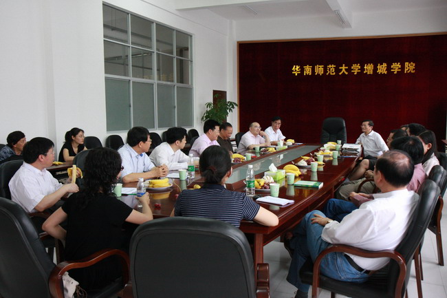 吴伯喻副院长首先介绍受聘任的七位省内知名专家教授,并宣读学院的聘任文件。院长李运生教授对七位客座教授加盟增城学院表示热烈欢迎,并简单介绍学院的办学特色、教学体系、人才培养模式等情况。接着,郭冬冬董事长和李运生院长为七位客座教授颁发聘书。华南师范大学外国语文化学院梁锦祥院长代表客座教授发言,指出聘任客座教授不仅在于探讨学科建设,促进学校发展,同时也创造双赢的局面,提供交流思想、观念、主张的平台,并满怀信心指出客座教授加盟增城学院将是广东教育发展的新篇章。最后,我系学生代表张宁同学用流利英文发表演讲,热烈欢迎客座教授的到来并期盼客座教授们为同学传授新知。