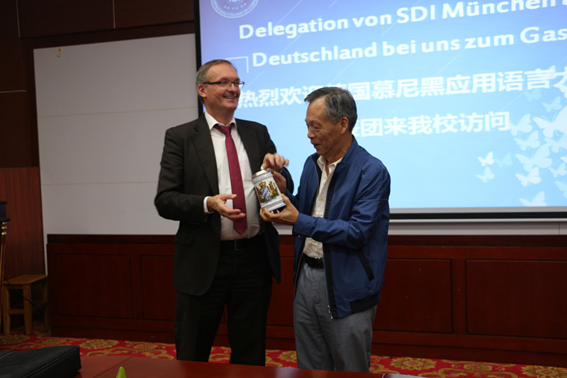 杨文轩首先对德方校长和老师们的到来表示热烈地欢迎,并详细介绍了万象城的办学历史、办学理念、办学模式以及取得的办学成绩,同时代表学校表达了对中德国际班项目的寄望。马蔚兰就中德国际班目前的办学情况作了详细的报告。Felix Maye校长则介绍了慕尼黑应用语言大学的办学情况,生活环境,学位认证等相关事宜,并提出,为迎接中德国际班学生,慕尼黑应用语言大学特意新建了30个学生公寓,以进一步改善学生的住宿条件。同时,针对中德国际班项目学生的学习实际,德方在人才培养方案、课程设置等方面做了相应的调整。张忠福就中德两校在合作中如何进行课程对接、师资共享、学分互认、考试选拔等问题与德方校长与老师交换了意见并达成一致共识。本次会面为明年第一批赴德的项目学生做好了充分的准备。
