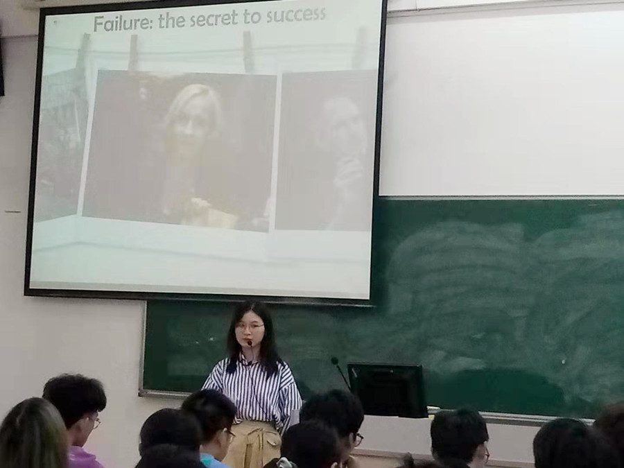 本次研讨课主讲为丁越老师,选用教材《新一代大学英语》基础篇1“综合教程”第六单元I-explore 1“Failure: the secret to success”。丁老师由失败与成功的关系讨论引入课文篇章分析。丁老师打破通常的逐句讲解单词和长难句的方法,首先通过分析文章结构和每个章节的大意,找到课文主题的核心词“process”,并围绕核心词对文章中的案例进行重新分析,通过重组著名人物由失败转成功的过程,总结了他们成功的“secret”,并把课本原有的用于导入的J. K. Rollings故事的视频作为正文的信息不足的补充,既强化学生获取信息的能力,也锻炼了听力能力。