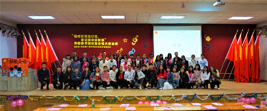为积极响应时代号召,鼓励青年学生勇于担当时代使命,12月8日,万象城团委以“唱响红歌亮灯塔,牢记使命谱新篇”为主题,在一教206举行学院首届红歌合唱大赛。学院党总支书记徐超、团委书记刘万里、团委副书记郑灿玲、辅导员伍思颖、刘丽萍、刘丽以及各二级学院代表、学院19级新生出席本次活动。