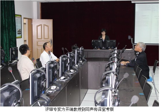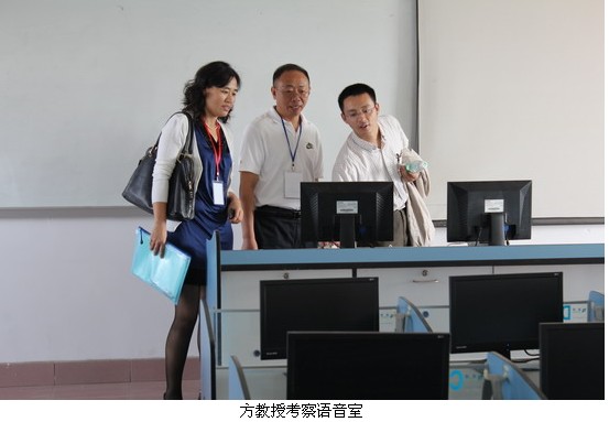 11月16日上午,评审专家方开瑞教授在外语系胡光忠主任及相关老师的陪同下,深入考察了外语系的同声传译实训室、语音室等教学条件,同时深入课堂第一线,与老师同学亲切交流。