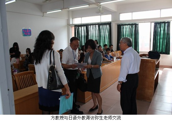 此外,方开瑞教授再次深入到课堂第一线了解教学情况,并与老师同学进行了亲切的交流。方教授分别听了外语系刘精香、诹访弥生老师的课,期间他与日籍教师诹访弥生用第二语言法语进行了亲切交流,气氛融洽。方教授在课后接受学生记者的采访时,对外语系的教学设备建设情况及课堂教学效果给予了高度评价,认为“效果非常好!”他从三方面做了简要评价:第一,教师课程设计完满,授课方式新颖有趣,所授内容符合学生兴趣;第二,学生反应良好,能够与老师互动,课堂气氛活跃;第三,所选教材够切实符合学生水平。