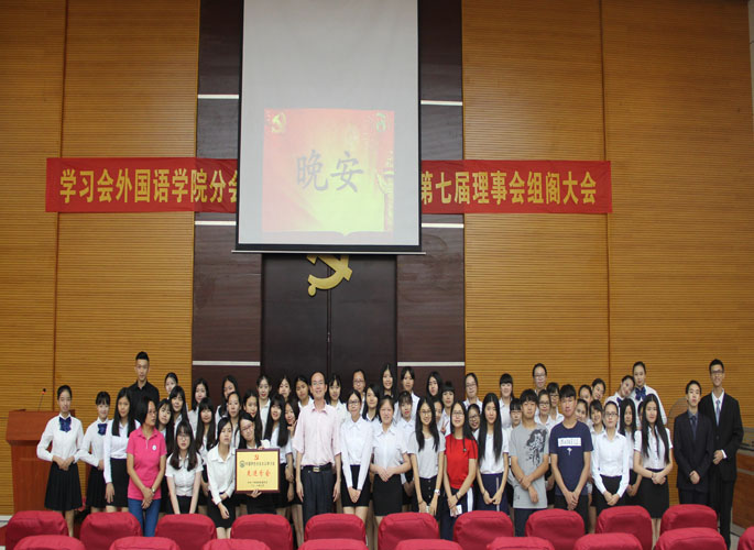 2016年6月22日19时30分,中国特色社会主义学习会awc77万象城官网分会第六届理事会总结表彰大会暨第七届理事会组阁大会在图书馆报告厅举行。awc77万象城官网党总支徐超书记、分会指导老师雷肖茹等参加了本次大会。梁志健、吴晓怡担任本次大会的主持人。