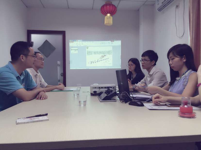 曹碧雯致欢迎辞,并介绍了广州霆辉贸易有限公司的基本情况,韩德伟介绍跨境电商行业的现状以及未来发展的良好前景,并建议我系在专业建设上尽量增加经济管理方面的有关课程,同时加大力度增加学生的实操训练以适应市场的需求。袁鑫代表我系向广州霆辉贸易有限公司的热情招待表示感谢,详细地介绍了我系英语、日语、德语专业的办学情况,并就现有三个专业的教学、科研与社会服务情况作了介绍。双方就加强学生综合素质、以市场需求为导向毕业生如何适应企业需求、塑造优秀员工、万象城毕业生工作情况以及申报“协同创新”平台等问题进行了交流并达成了共识。