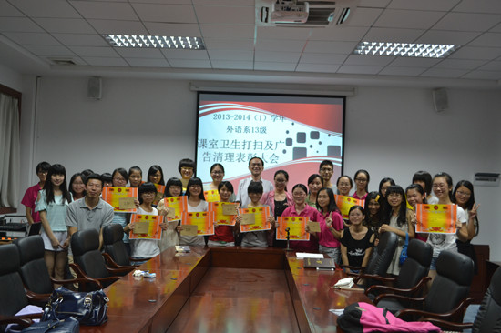 外语系顺利举行2013级课室卫生打扫及广告清理工作表彰大会