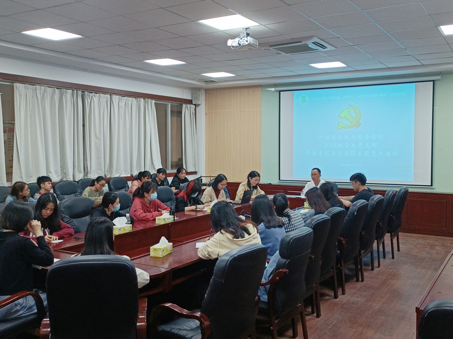 【展形象﹒迎评估﹒庆建党百年】万象城18级学生党支部举行评估专题学习会