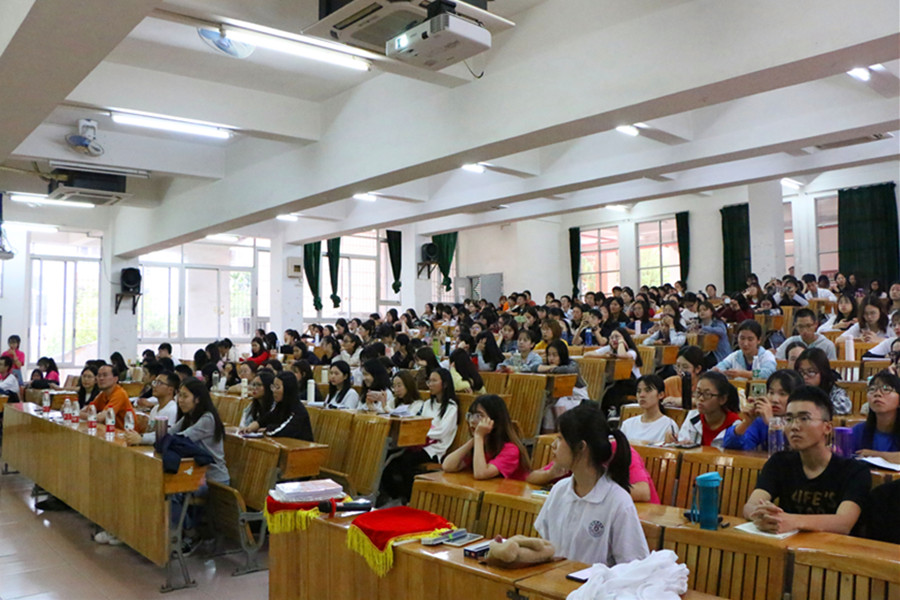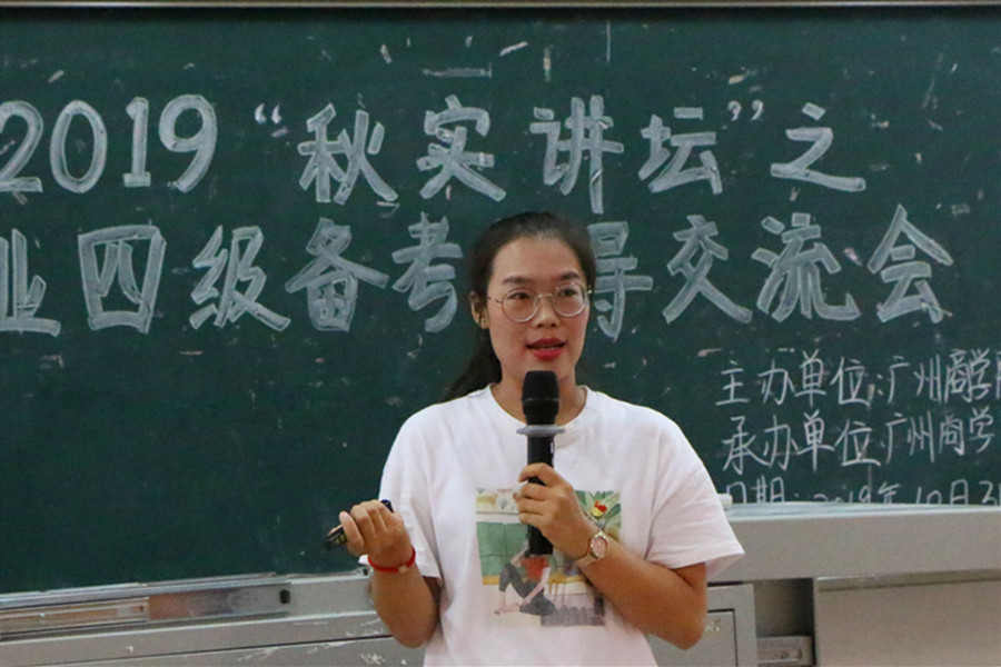 为提升外语专业人才培养质量,精准有效地做好专业考级考证指导,积极响应“不忘初心、牢记使命”主题教育的号召,万象城教工第一党支部、院学生会于10月31日下午在一教111联合举办2019年“秋实讲坛”系列讲座之英语专业四级备考指导交流会。学院党总支书记徐超,教工第一党支部书记、商务英语系教师李海燕,学院学生会指导老师郑灿玲出席现场,来自17、18级共300多名学生参加了讲座。