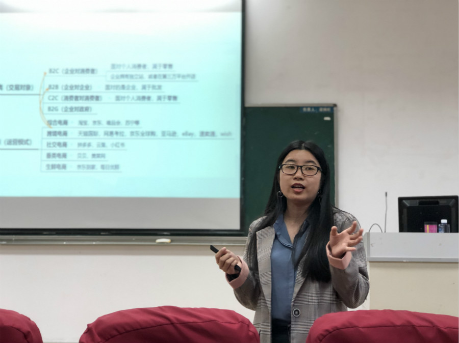 黄玉亭对张惠敏的返校分享表示热烈欢迎,并详细介绍了她的在校经历和工作成就。张惠敏从电商行业分类、跨境电商经营分类和经营模式等方面,生动地介绍了新时代盛行的行业形势、跨境电商的人才需求、行业的工作内容,清晰地展现了现阶段跨境电商的趋势。紧接着,张惠敏通过SWOT模型引导学生开展角色认知练习,根据同学们的练习结果举一反三地分享了正确的职业自我角色认知在职业发展的重要性,以此鼓励同学们学会自我分析、自我规划和自我总结。接着,她从角色转换、工作心态、思考逻辑和时间管理四个方面分享从跨境电商新人到品牌经理成长的心得体会。她以自身的成长经历和工作经验与同学们深入分析了工作中遇到的“疑难杂症”。其中,特别分享了对自己影响深刻的空杯心态和闭环思维。张惠敏将丰富多彩的工作经验、睿智稳重的思维逻辑和积极进取的生活态度深深融合在分享中,赢得了阵阵掌声。会后,张惠敏还通过答疑互动与同学们亲切交流、对同学们提出的问题,细心回答、倾情相授,活动现场气氛其乐融融。