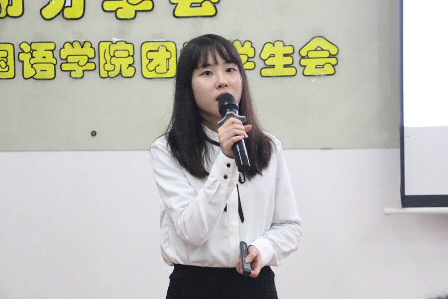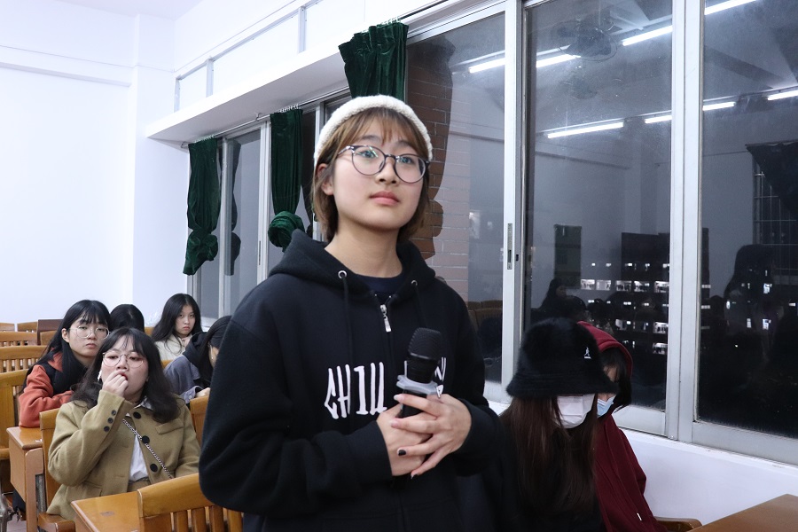 曹嘉仪重点从“策划者”与“参与者”两个方面向同学们展开分享,并提出两个问题“我能收获什么?”、“我能学到什么?”。她向同学们分享社会实践的意义,以“三下乡”为例分析了策划一次实践活动所需要的前期准备工作。之后,她以“大学,不只有知识的海洋,还有诗和远方”为寄语,希望同学们明确自己的方向,以学校为起点,以远方为目标,朝着更好的方向前进。