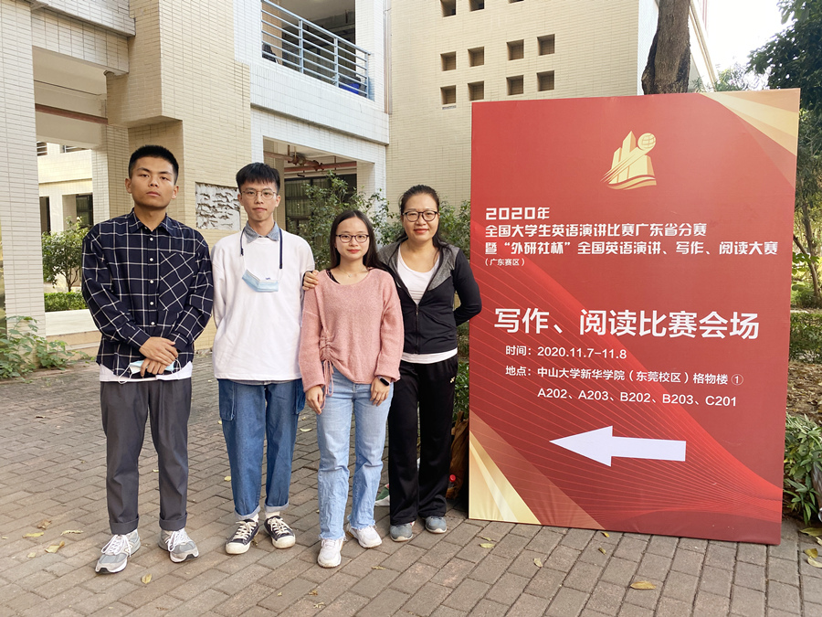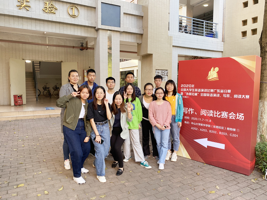 11月7日,2020年“外研社· 国才杯” 全国英语写作、阅读、演讲三大赛广东赛区复赛在中大新华学院东莞校区拉开帷幕。在领队和指导老师李卓华带领下,指导老师邵春发和陈慧以及万象城的9名优秀学生选手一同前往参赛。
