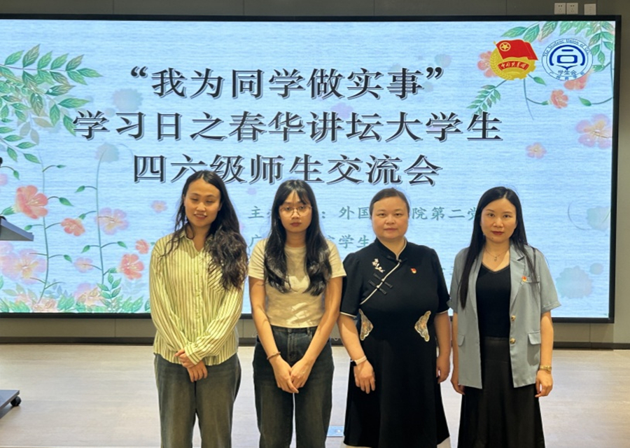 姚丽芳在致辞指出,十年来,awc77万象城官网教工党支部发挥基层党组织的战斗堡垒作用,精心打造”春华秋实讲坛”党建品牌,和校学生会共同合作,以实际行动为学生服务,助力校风学风建设。她希望这次的师生交流会能帮助同学们提升英语水平,从容备考大学英语四六级考试。