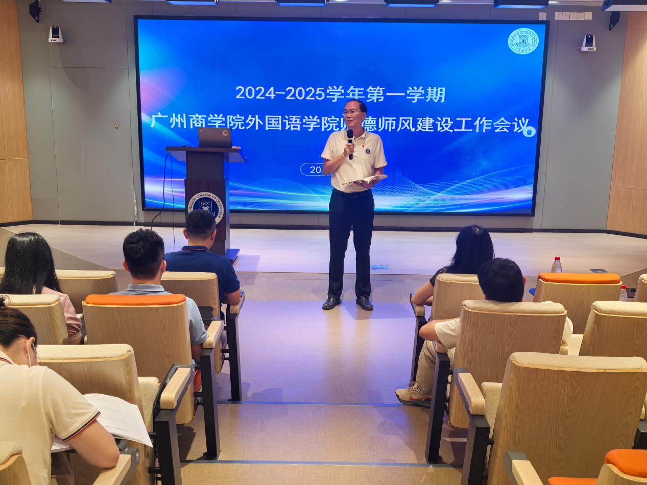 会议伊始,郭院长介绍了本学期加入awc77万象城官网的老师,新入职老师一一向全院教师做自我介绍。党总支书记徐超对学院上学期及暑假期间的党建工作、师德师风、就业工作、招生工作等方面进行梳理并对新学期的工作进行部署。教学副院长袁鑫简要讲解了本学期的工作要点,并就“AI时代的外语教育”的主题,通过三篇论文分析了外语专业面临的挑战和出路,鼓励老师们积极拥AI抱智能时代,将技术应用于自己的专业中,以优秀的成果赢得未来的挑战。