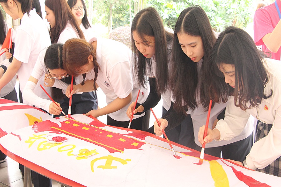 然后,各位绘画人员发挥他们的艺术灵感,为画卷融入了独特的色彩。这一笔,那一画,都构成了不一样风格。紧接着,他们也各自用一幅画表达了他们对祖国的热爱,色彩斑斓的创作,是他们对青春最美好的展示。脸上洋溢着的微笑,是他们最美的时刻,也是他们对祖国最美好的祝福。