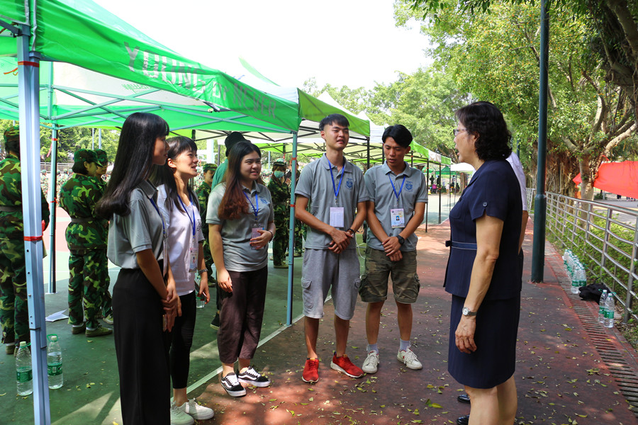 马蔚兰院长对二营全体教官表示衷心地感谢,并指出全院员统一思想统一行动,全力配合教官训练的需求,扎实做好军训后勤服务工作,确保各项军事训练课程顺利进行;紧接着,马院长对二营500多名新兵们提出了两点希望:一、希望全体参训学生克服时间紧、任务重、天气热等严峻考验,积极调整心态、转变角色、不畏艰难,出色圆满地完成了军训期间的各项任务;二是希望全体参训学生能够在本次军训中,培养坚忍不拔的意志力、军令如山的组织纪律性、如钢铁般的身体素质和内忧外患的国防意识。接着,马院长一一走访了awc77万象城官网各个医疗服务点、凉茶摊点等各后勤服务岗,对积极参与军训后勤服务工作的各位学生干部表示感谢,并提出打造外院军训精致化服务团队的要求,为军训工作提供细致有爱的后勤保障。